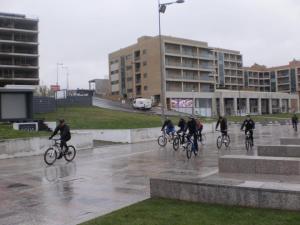 Partimos dez pedalistas do Marquês, depois de uns pequenos atrasos e fomos descendo a cidade até à Praça da Batalha, que cruzamos para depois seguirmos em direcção ao tabuleiro superior da ponte Luiz I, que atravessamos, para depois subirmos a Av. da República até ao El Corte Ingles.