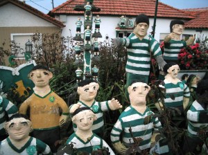 Retemperados por bolinhos e bananinhas e aquecidos pela cafeína, fizemos-nos à ciclovia pela marginal das praias afora, com uma paragem para conhecer outro local de culto, desta vez um santuário dedicado ao Sporting Club de Portugal, certamente por um adepto verde dos pés à cabeça.
