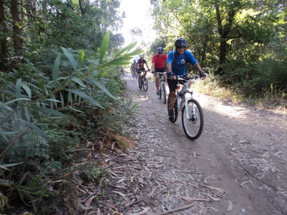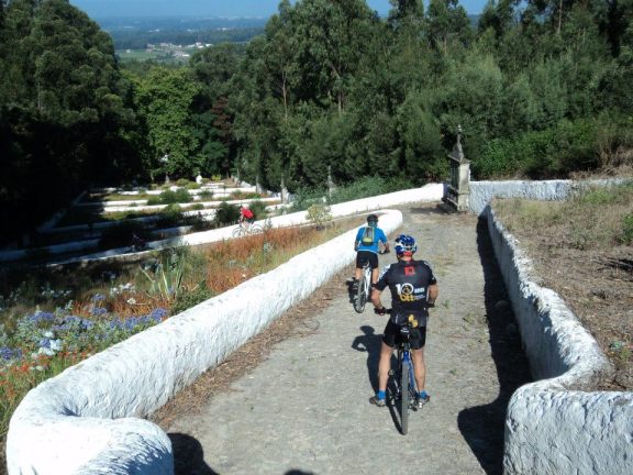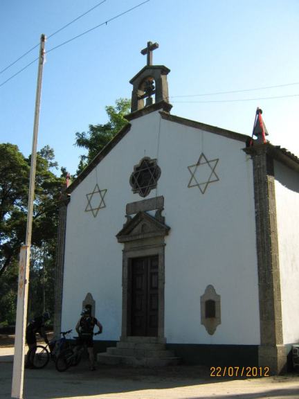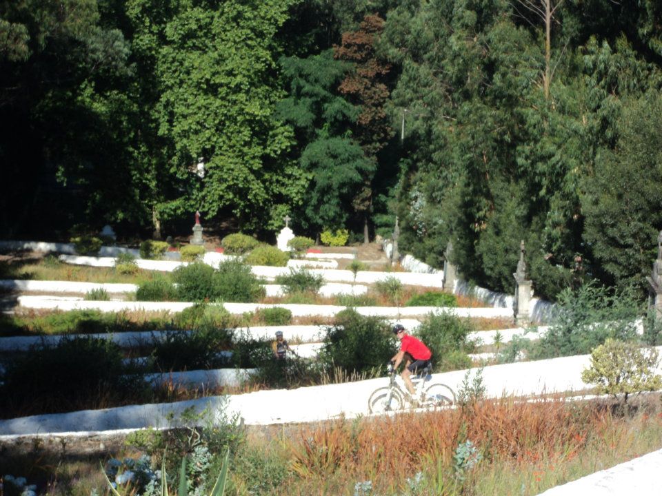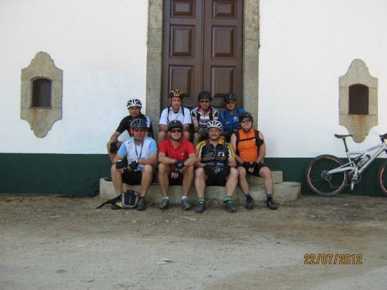Chegados a Stª Eufémia, era hora de chamar a “avózinha” para a rampa que à nossa frente se apresentou…e que rampa, “puxa que eu gemo” dizia um dos fieis, mas todos chegámos ao topo e aqui a paragem foi breve pois havia a quem a presença de ciclistas junto ao adro da igreja incomodasse, mas mesmo assim ainda fomos brindados pela boa disposição de outros que nos sossegaram dizendo…“estes não mordem”,referindo-se aos cães que não nos largavam.