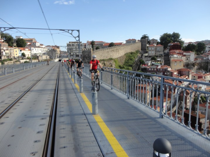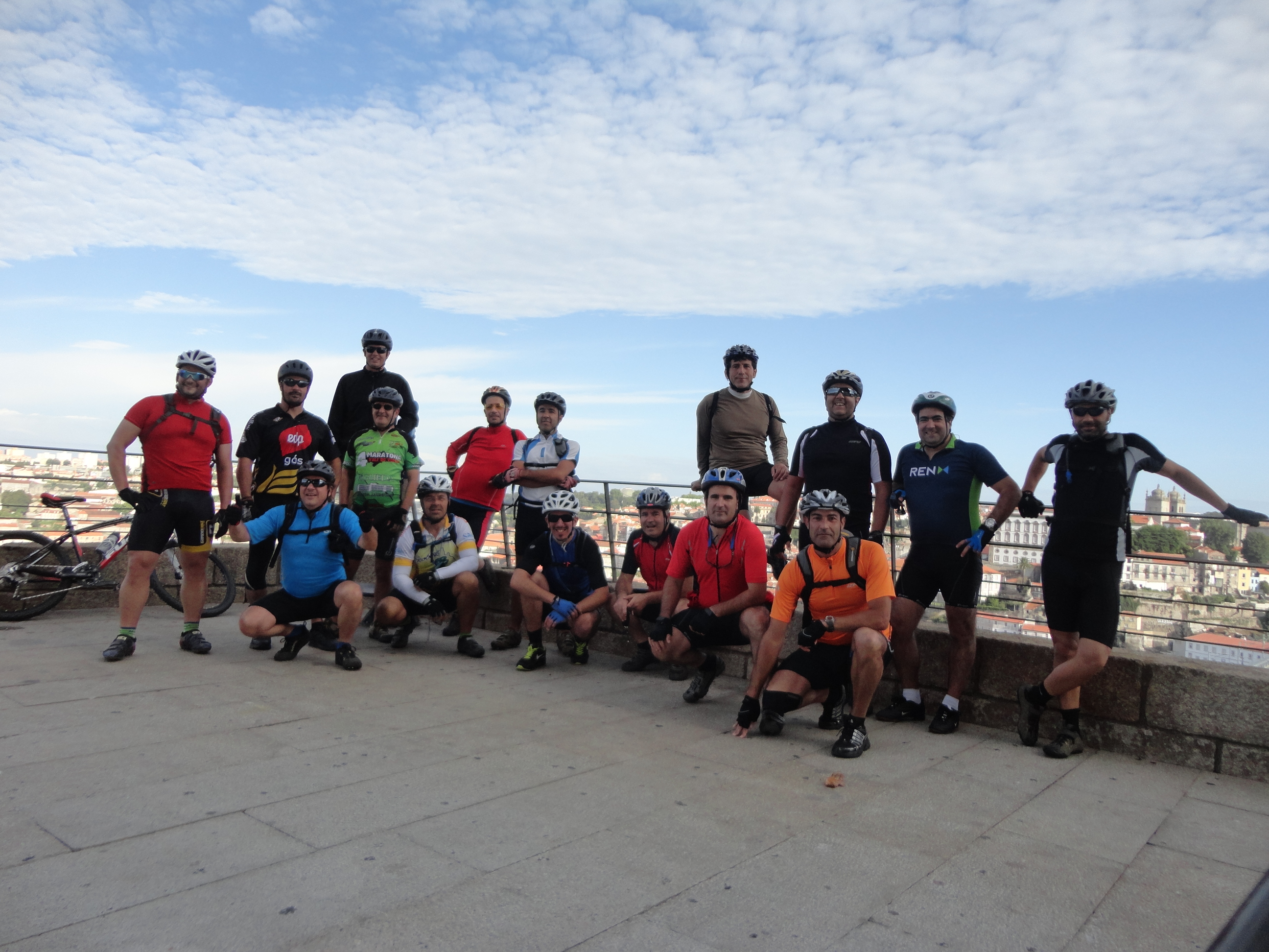 Fomos todos lá acima, apreciamos as belas vistas para o Douro e para todo o casario tripeiro, que se vislumbra da Ribeira até ponte da Arrábida e tiramos as primeiras fotos de grupo, fotos estas, que registam passagens por locais por onde nunca tínhamos pedalado e que posteriormente vão para a galeria do nosso blogue.