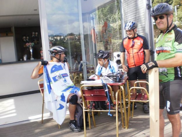 Algumas fotos mais, com os cafés tomados ouvindo música a preceito e depois de dois dedos de conversa sobre bandeiras, mapas e percursos, eis-nos de novo em cima delas, montados nas nossas… bikes.