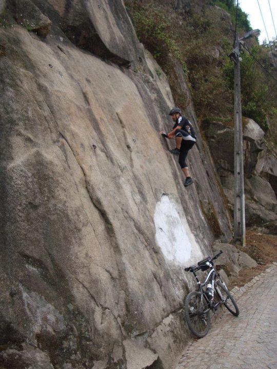 Daqui em diante, ainda houve tempo para o Zulu, fazer um pouco de escalada, numa parede da escarpa da serra do Pilar, coisa nunca vista nestas multifacetadas pedaladas.
