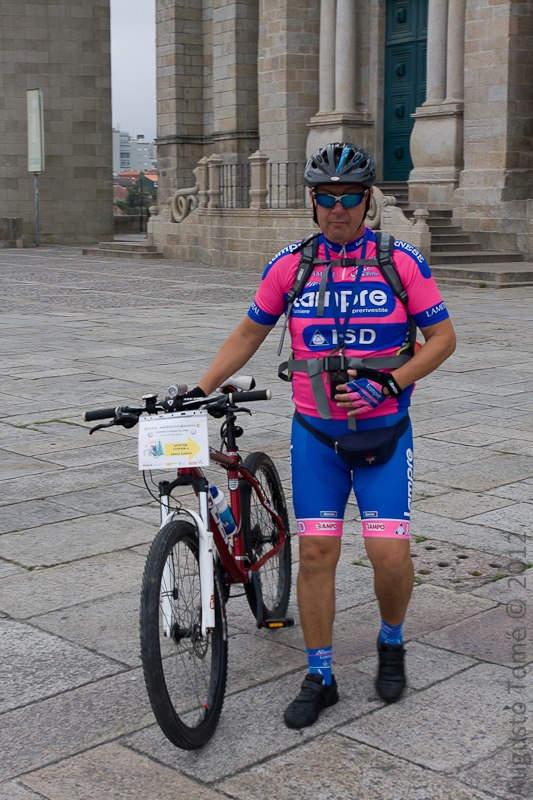 Tivemos alguns percalços pelo caminho, mas todos foram solucionados!!! Saliento que nenhum dos elementos levou um pneu sobresselente e tivemos um colega (Rogerio) que o pneu da sua bike estourou e nós conseguimos resolver o caso e seguir em frente, faltavam ainda 25 Km para chegar à Praça Obradoiro.