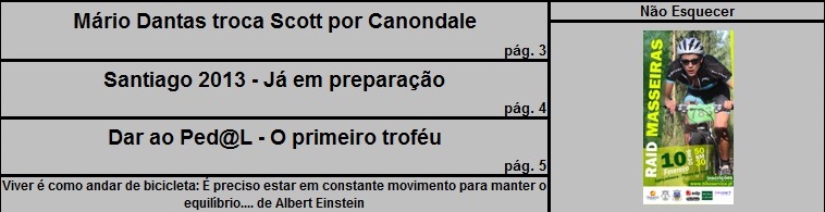 2. Já se sabia do seu jeito para a fotografia e da sua inclinação para o btt mas o homem também tem jeito para o jornalismo…é o nosso amigo Tomé um renascentista dos tempos modernos. Gostei do Jornal Mensal. Podemos explorar essa ideia. Um abraço!