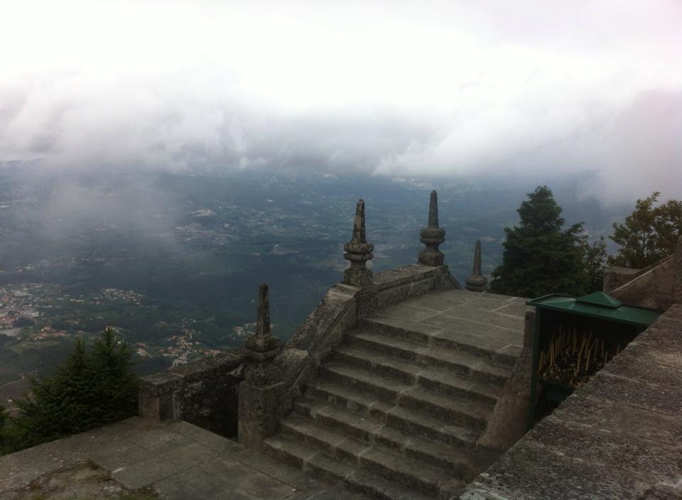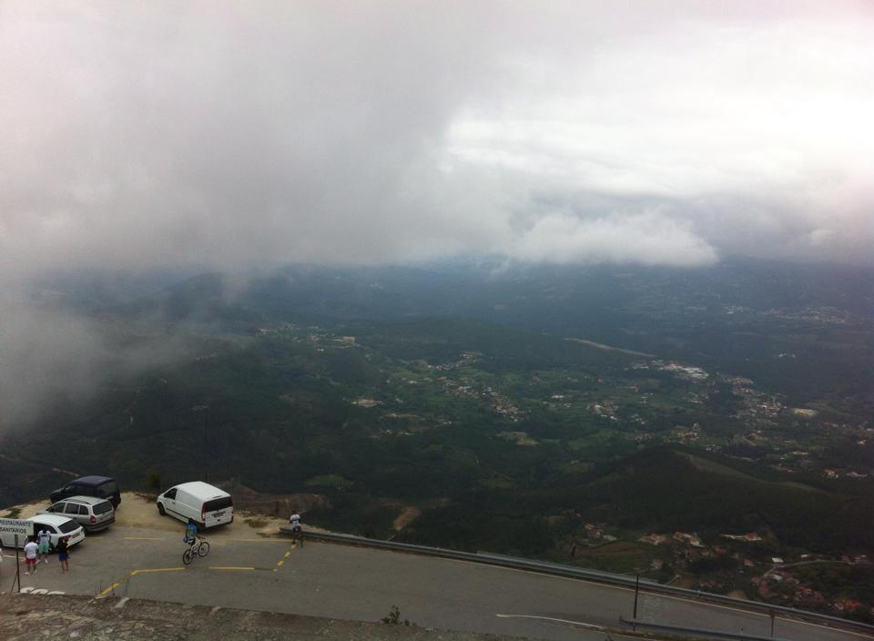 À medida que me aproximava da Srª Graça (Igreja) a temperatura baixava. A Jersey que levei, de aberto passou para meio aberto e depois de passar o Largo de S. Tiago passou mesmo para totalmente fechado. Além de sentir o frio, caía uma chuva miudinha e com nevoeiro.