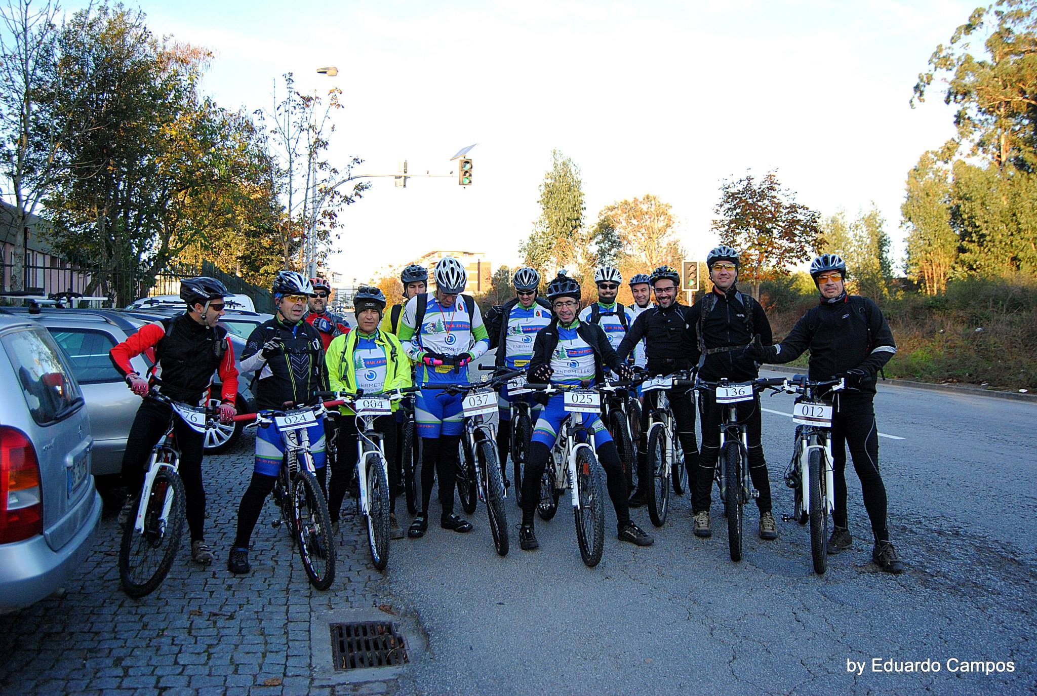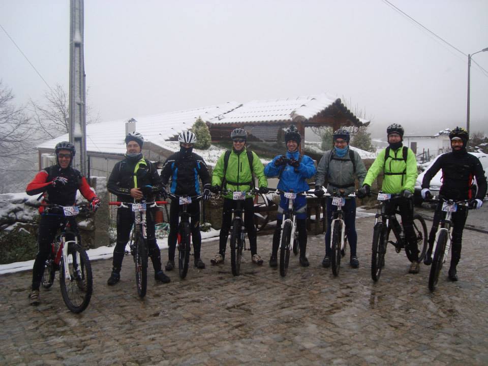 Chegados a Vale de Cambra, carros estacionados, procedemos ao levantamento dos dorsais, fizemos algumas fotos de família para a posteridade, juntá-mo-nos ao Eduardo Batista e aos dois amigos Tiago Marques e Ricardo Gonçalves do Crude BTTeam, e aos nossos amigos Henrique Cardoso e Paulo Ribeiro, que já lá estavam, e ainda, aos nossos 5 amigos da Feira, Rui Miguel Azevedo, Filipe Vaz, Bárbaro Santos, Vasco Silva e Rui Antunes, que desta feita trouxeram mais um amigo para pedalar nesta etapa do Circuito – o Patrice Almeida, 6 portanto, no total saímos do local do secretariado a pedalar 22 duros.