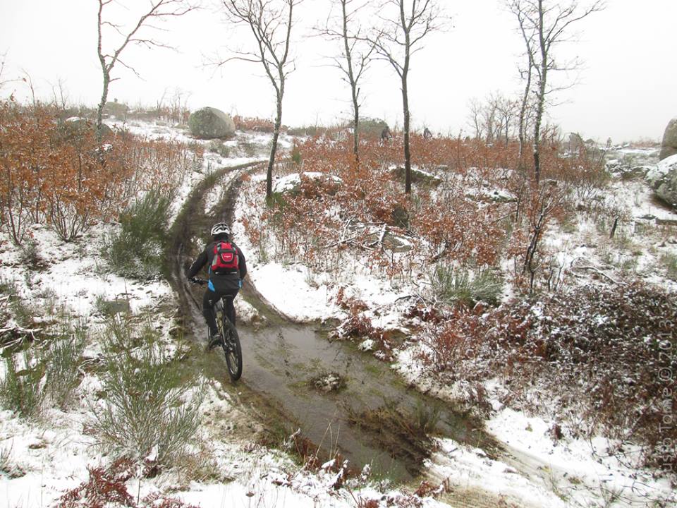 Resta assinalar a estreia absoluta da nova menina do Paulo Domingos, que a estreou logo com uma tareia jeitosa, a sua Corratec X-Force 03, mais os seus 140 mm de curso, e que fizeram com que os trilhos para ele fossem mais ou menos uma auto-estrada com subidas e descidas!