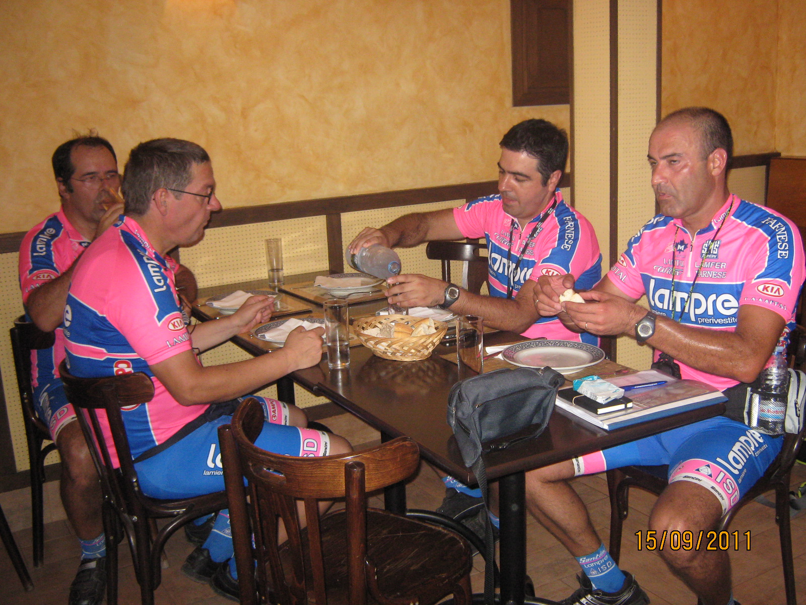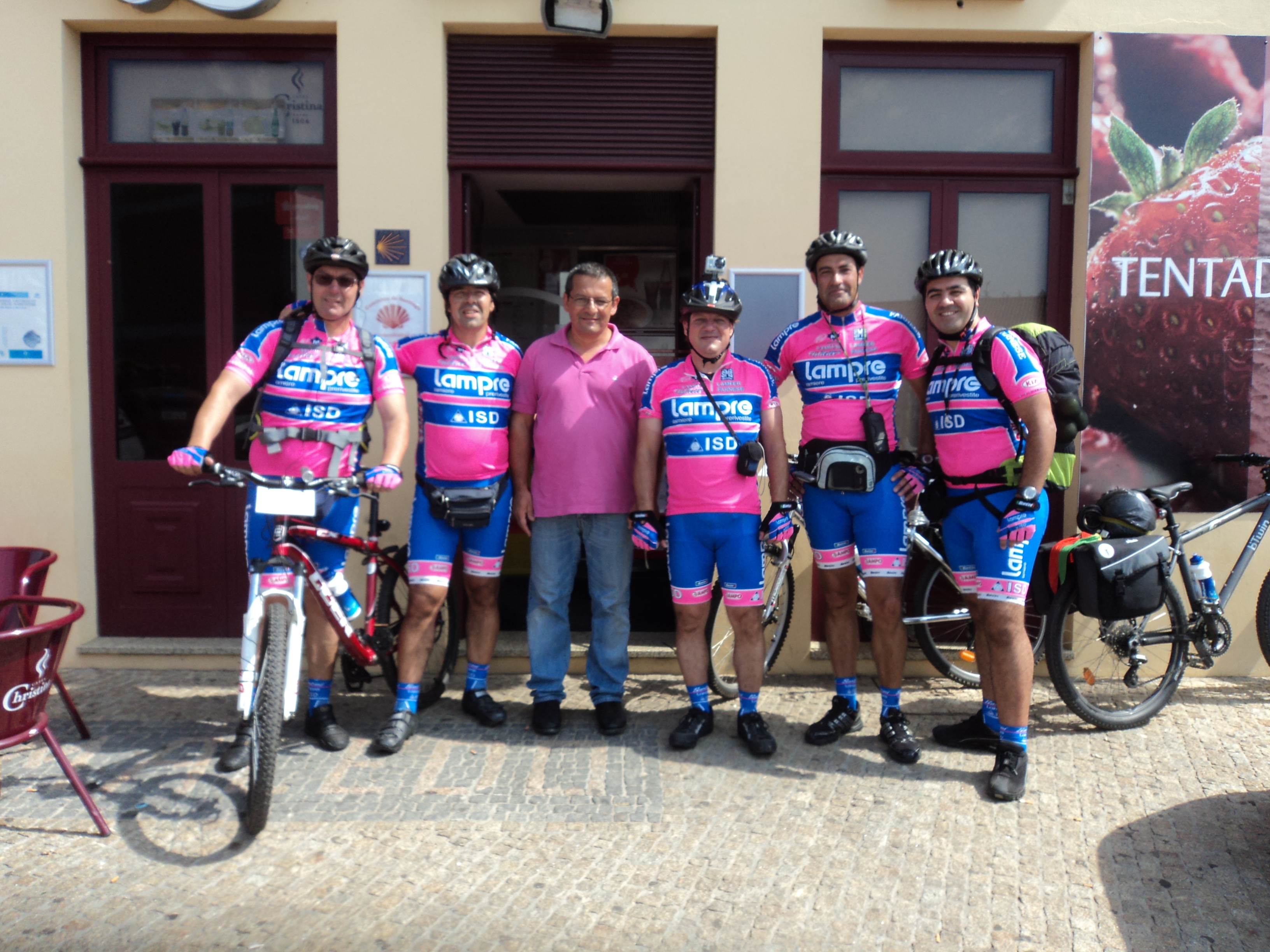 Como é tradição, fomos ainda procurar mais um carimbo ao Macedo’s Bar e também aí fomos bem recebidos, tendo mesmo o dono do bar nos pedido para tirar uma foto do grupo com ele, uma vez que tinha gostado imenso do nosso equipamento rosa da Lampre. Foram mais umas fotos de grupo para mais tarde recordar e quem sabe um dia, veremos essa foto nas paredes do bar.