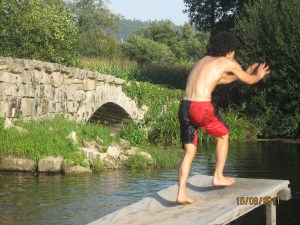 Já no vale, atravessamos o Neiva, na ponte medieval das Tábuas, junto a uma pequena praia fluvial onde se banhavam algumas crianças e, falo por mim, bem me apeteceu fazer o mesmo mas, Ponte de Lima esperava por nós e tínhamos que arranjar alojamento no albergue, pelo que o banho no rio seria substituído por um duche, que todos desejávamos.