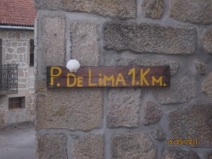 Quilómetro após quilómetro, fomos galgando caminho, parando aqui e ali para beber água, comer umas barritas energéticas e tirar mais umas fotos, como por exemplo, as que tiramos numa capela que possui um púlpito exterior e da qual não me recordo o nome nem a localidade, até que deparamos com uma placa no caminho que a todos agradou – Ponte de Lima – 1 km.