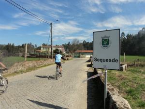 Corrigido o engano, fomos seguindo novamente as setas e passando por outras pequenas localidades, ora pedalando, ora parando para tirar fotografias, até à nossa primeira paragem com intenções de se colocar mais um carimbo nas nossas credenciais e de tomarmos o cafezinho da praxe. O local escolhido, foi um café em Bagunte.