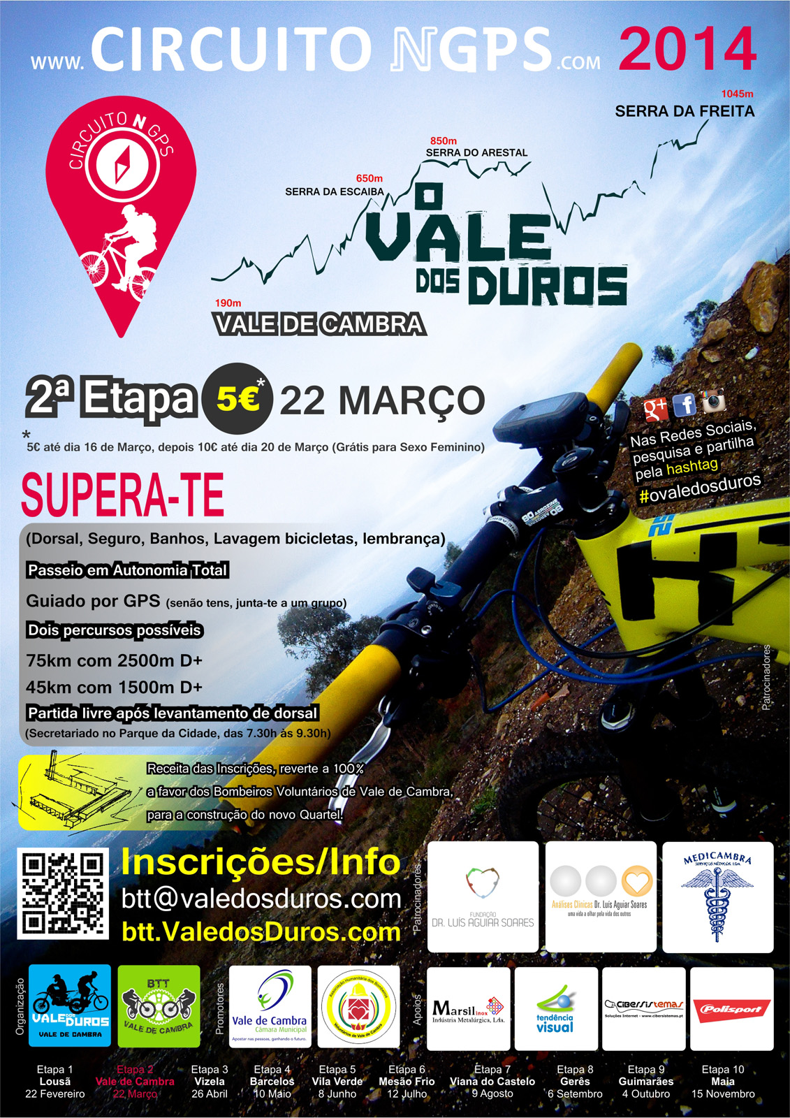 Há precisamente um mês atrás, a 22-02-2014, ocorreu a 1.ª Etapa do Circuito NGPS 2014, o Geo Bike Challenge, na Lousã, organizada pelos amigos da Ecobike, que já nos habituaram à colocação da fasquia alta, no que se refere a qualidade de trilhos e organização, admito que estava um pouco apreensivo com estes “novos” amigos de Vale de Cambra – os Vale dos Duros, não é nada fácil organizar um evento desta dimensão e conseguir que tudo corra pelo melhor, nós os que pedalamos alegremente pelos trilhos, muitas das vezes não fazemos a mínima ideia da logística que envolve proporcionar um sábado alegre e colocar um sorriso de orelha a orelha, na cara de 900 gajos! Mas, confesso que os nossos amigos de Vale de Cambra estiveram irrepreensíveis em todos os aspectos, que maravilha, esteve tudo impecável no que ao nosso grupo diz respeito, trilhos duros, mas excelentes, organização ao mais alto nível, estacionamento, localização, banhos, etc… que mais se pode exigir de quem tanto se empenhou, nada, do melhor mesmo, o Dar ao Ped@l deseja os maiores sucessos e parabéns a todo o staff da organização da 2.ª etapa.