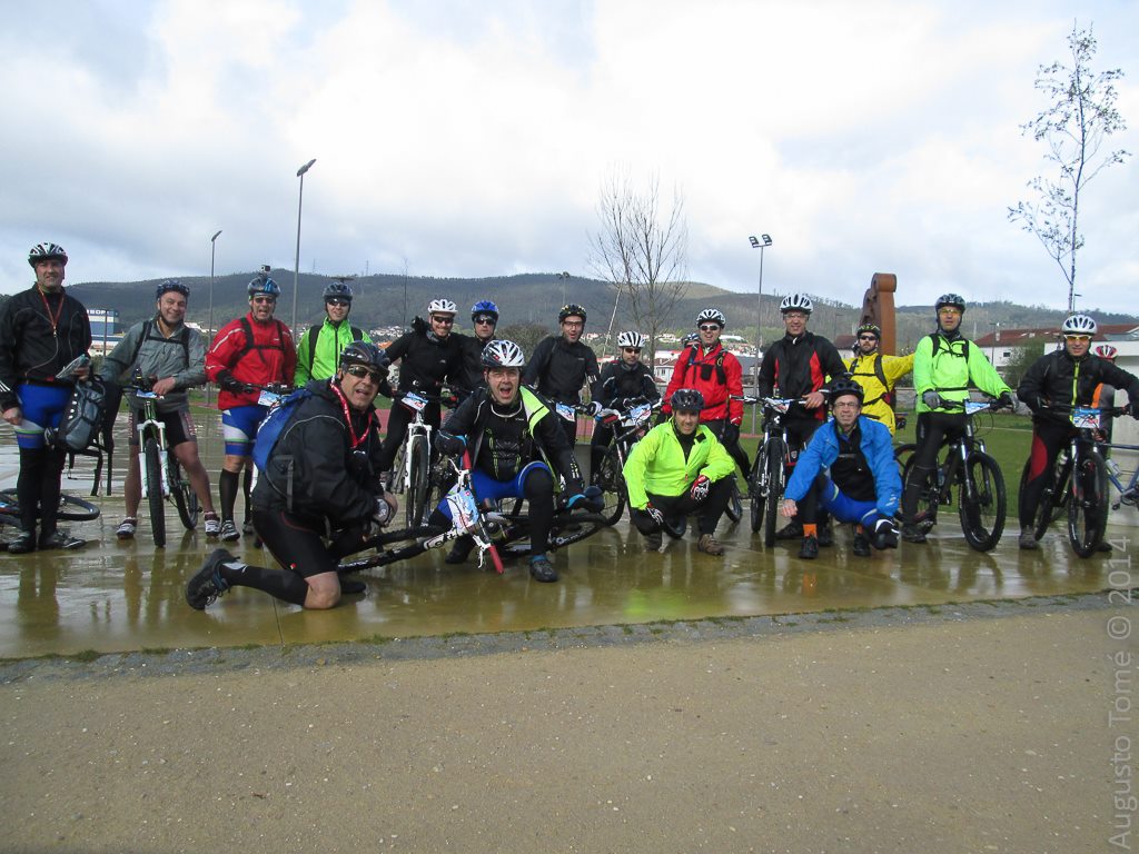 Chegados a Vale de Cambra, carros estacionados, procedemos ao levantamento dos dorsais, fizemos algumas fotos de família para a posteridade, juntá-mo-nos ao Eduardo Batista e aos dois amigos Tiago Marques e Ricardo Gonçalves do Crude BTTeam, e aos nossos amigos Henrique Cardoso e Paulo Ribeiro, que já lá estavam, e ainda, aos nossos 5 amigos da Feira, Rui Miguel Azevedo, Filipe Vaz, Bárbaro Santos, Vasco Silva e Rui Antunes, que desta feita trouxeram mais um amigo para pedalar nesta etapa do Circuito – o Patrice Almeida, 6 portanto, no total saímos do local do secretariado a pedalar 22 duros.