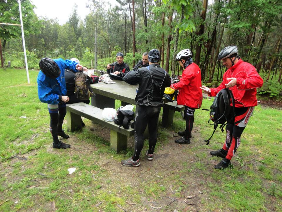 A chuva manifestou-se logo à saída de Vale de Cambra, e ainda mais algumas vezes pelo caminho, mas como quem anda por gosto não cansa, não demorou nada estávamos na dança do “veste impermeável… tira impermeável”. Os primeiros quilómetros foram sempre a subir, mas pacíficos, e aproveitando as paragens para reagrupamento, alguns de nós fomos aproveitando para tirar mais roupa e arejar as axilas e colocar mais peso nas mochilas.