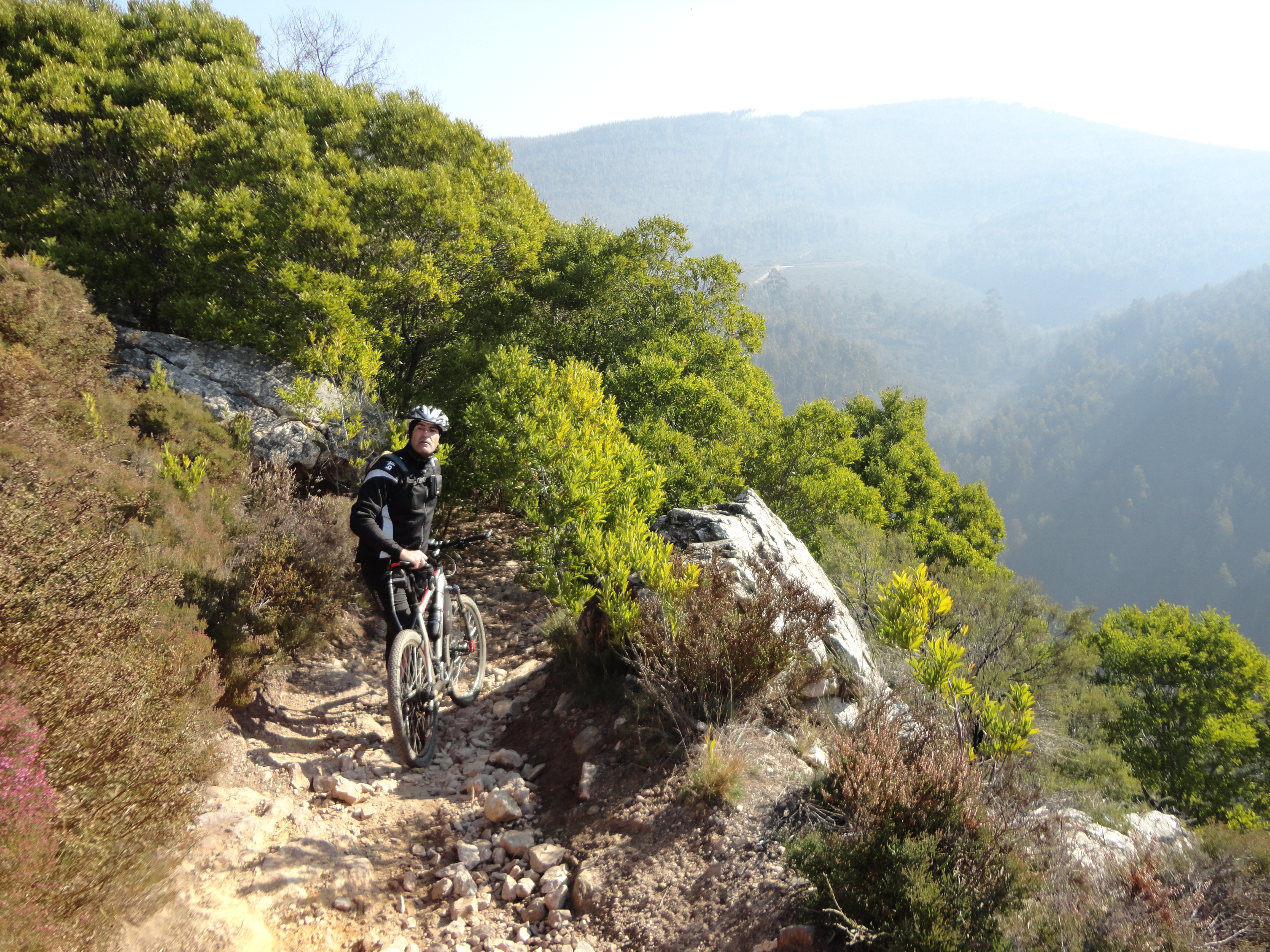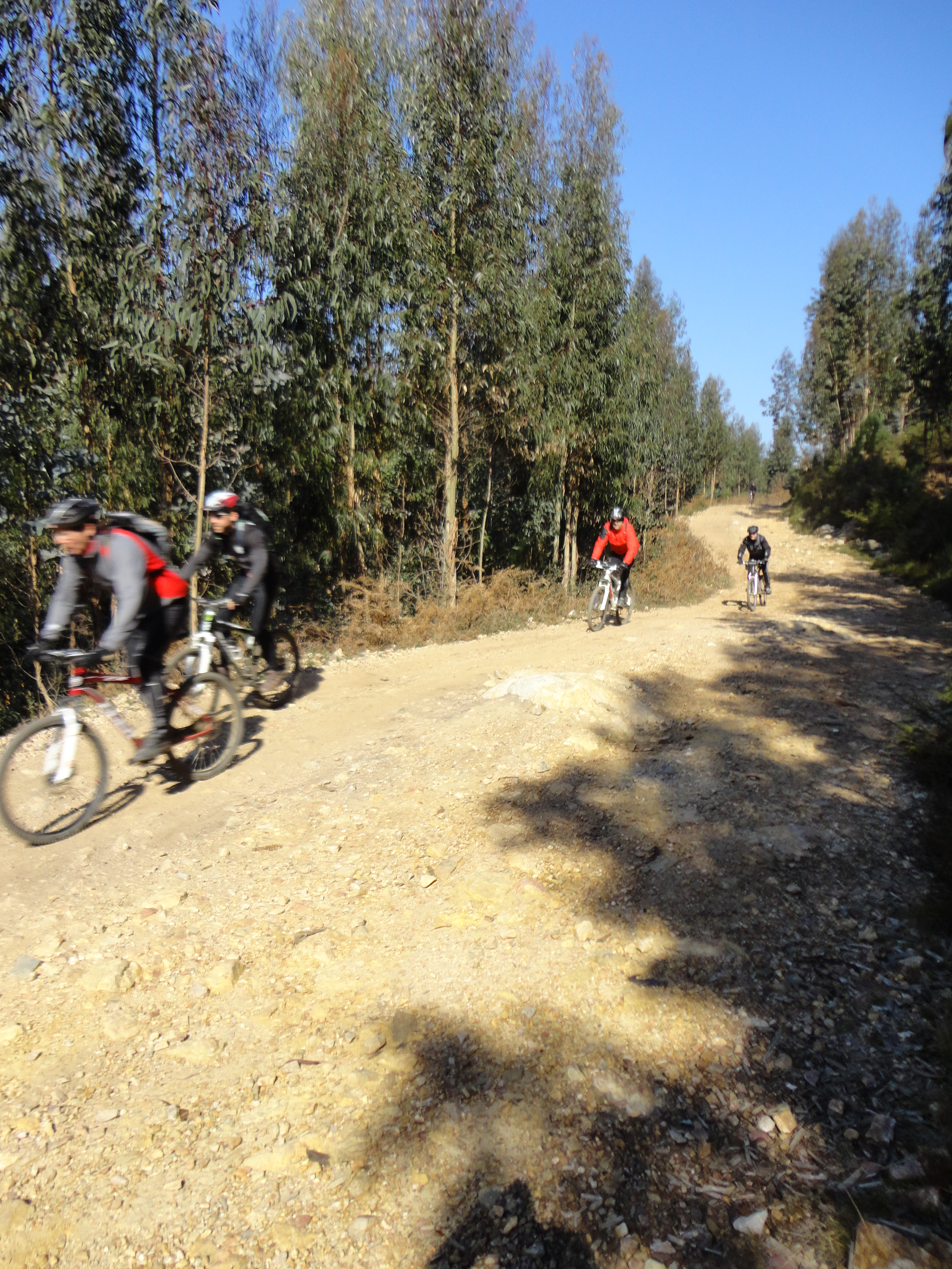Daqui, optamos por seguir o trilho das caminhadas e não a estrada em paralelos e logo no início dá-se a queda espectacular do Mascarenhas, ao tentar ser acrobata em vez de pedalista, e arriscar passar por um caminho em forma de muro em terra e com declives em ambos os lados. Foi queda na certa e só não deu lugar a problemas de maior pois ele foi rápido a saltar e a libertar-se da bike.
