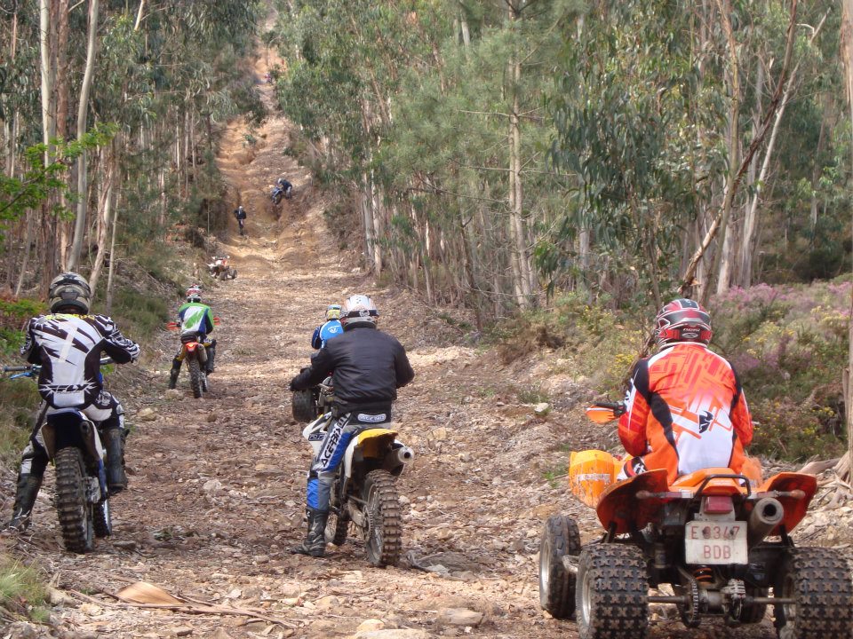 É um trilho largo, longo, sempre com inclinação pendente, que proporciona saltos, com muitos obstáculos naturais, provocados pela erosão e pela água das chuvas, mas também artificiais, desta feita deixados pelos rodados dos jipes e das motos, com as quais também nos cruzamos.