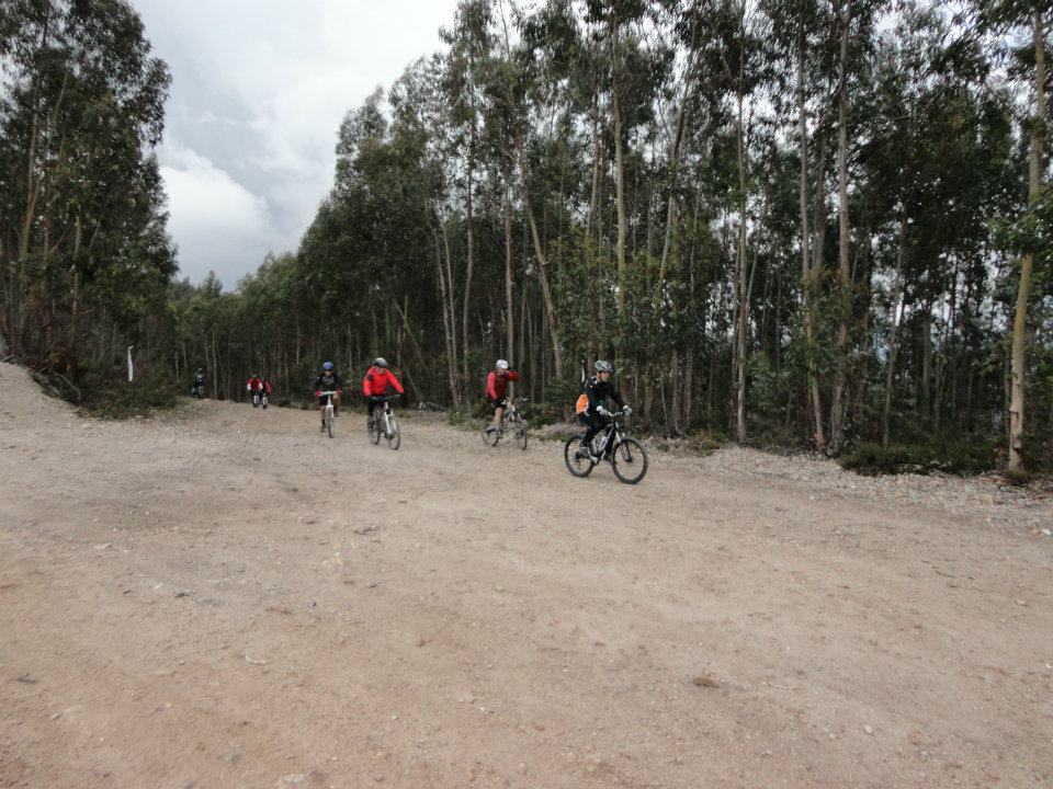 Toca a pedalar e a ir de encontro ao trio que se adiantou e por nós ficou à espera na enorme clareira que antecede a muito conhecida descida do “gasoduto” , que nenhum de nós arrisca, por enquanto descer, onde apreciamos um grupo que a desceu com alguma velocidade e onde tiramos a belíssima foto de grupo, a tal do recorde de participações.