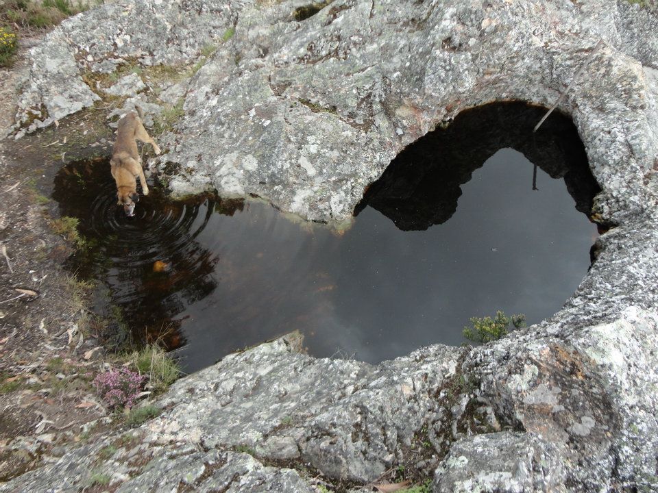 Tirada a foto de grupo por um pedalista (José Pires) que lá se encontrava com o seu amigo, seguimos viagem, já com a companhia destes dois amigos, em direcção à “Santa” e às ditas pias, concavidades nas rochas que que dão nome à serra.