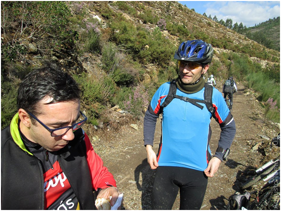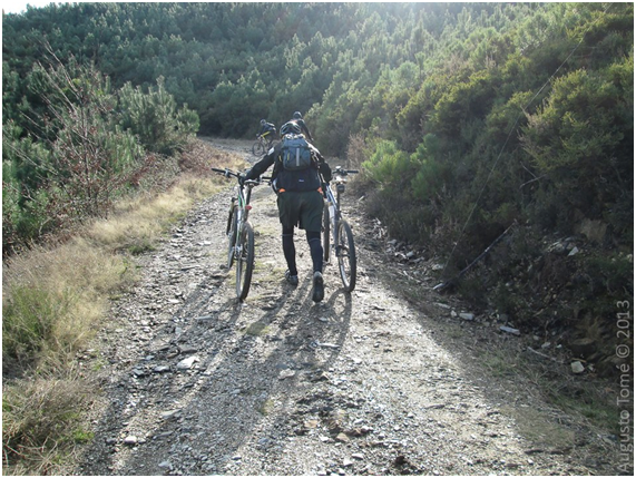 De inicio tive alguma dificuldade, porque o arranque foi um bocado forte 22.5 km sempre a subir, ficando ao Km 5 dois nossos amigos, falta de treino ou preguiça por se juntar aos colegas nos encontros Domingueiros, tentei acompanhar a malta, aliás não impus o meu ritmo adequado a este percurso e esse foi o meu erro, pois mais tarde isso paga-se caro, mas como cheguei atrasado à subida principal (Talasnal), tive de a subir com a bicicleta à mão.