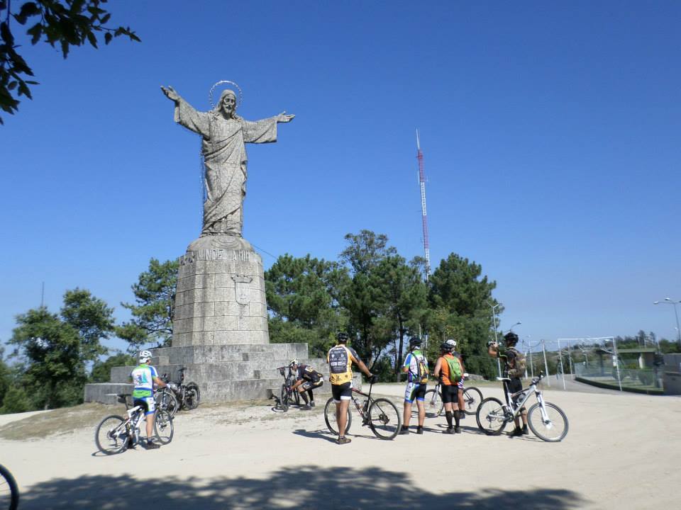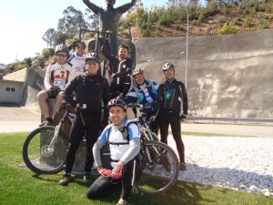 Reunidos para a foto do grupo no Cristo Rei… demonstração do feito… Levantamento da bike, como sinal de objectivo conseguido.