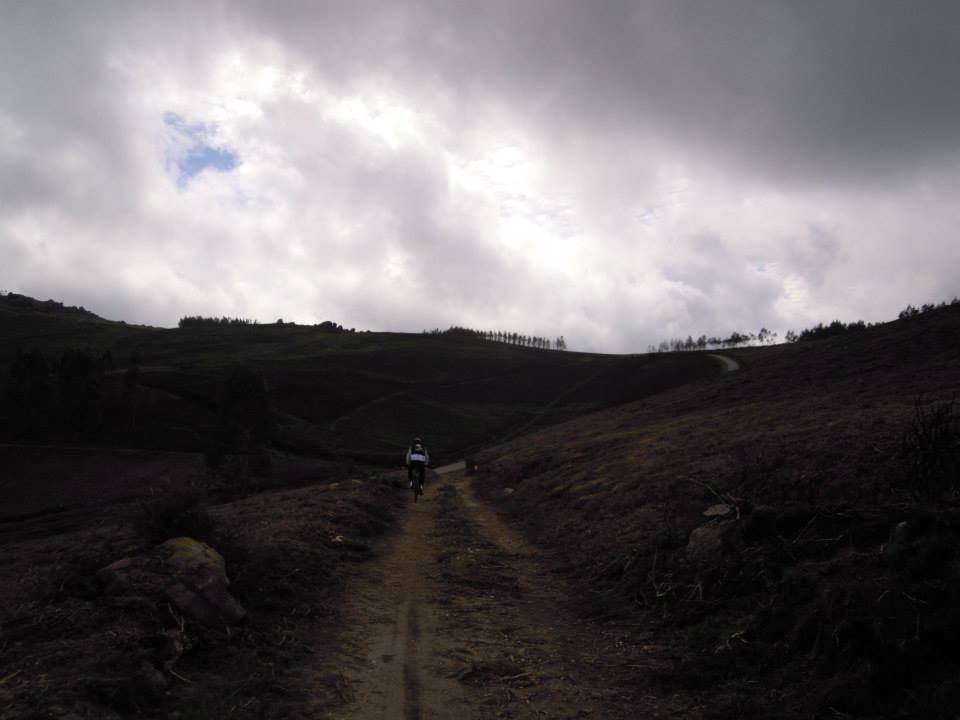 E assim foi, lá fomos trilhando terra e mais terra, pedras e mais pedras, lama e poças de água, paralelos e asfalto até que chegamos por fim, já com o tempo a prometer grandes mudanças e para pior, com mais frio e vento, à dita Citânia de Sanfins, onde depois de algumas fotos iniciamos a descida, primeiro por um trilho muito técnico e com alguma dificuldade e depois por outro completamente impróprio para bicicletas, totalmente não ciclável, até que tivemos de vestir à pressa os casacos da chuva, para mais um dos aguaceiros, que julgávamos nós, em breve desapareceria, como outros tantos que já o dia tivera.