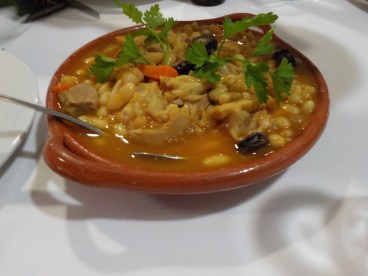 Depois de acauteladas as bicicletas e de uma espera um pouco longa, tivemos direito a um bom repasto, em qualidade e sobretudo quantidade e o melhor, por um valor bem razoável, tendo os participantes optado, uns por comer carne, fosse o cabrito, as tripas, o cozido ou os rojões e apenas dois, por uma bela travessa de bacalhau.