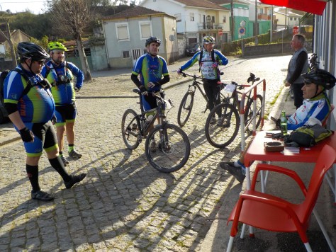 Um café local serviu de base para o reagrupar e hidratar do grupo, já atrasado para o slide.