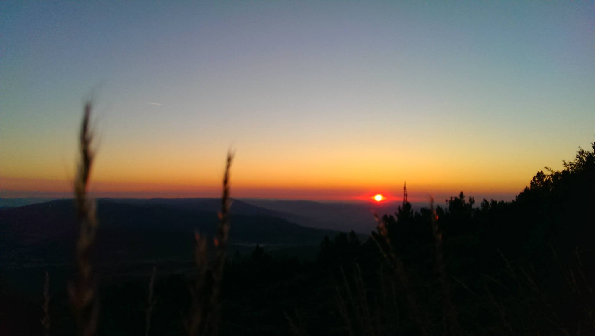 Chegados ao topo, tiramos a foto da praxe, e descansamos um pouco atrás de um pequeno muro, de modo a nos protegermos do frio, até que alguém nos indicou que a capela estava aberta, dirigimo-nos até lá e era só pessoal a descansar, uns deitados no chão, outros sentados nos bancos, mas pelo menos abrigados do frio que se fazia sentir no cimo da serra, agora tínhamos que aguardar pelo nascer do Sol, ainda faltavam alguns minutos.