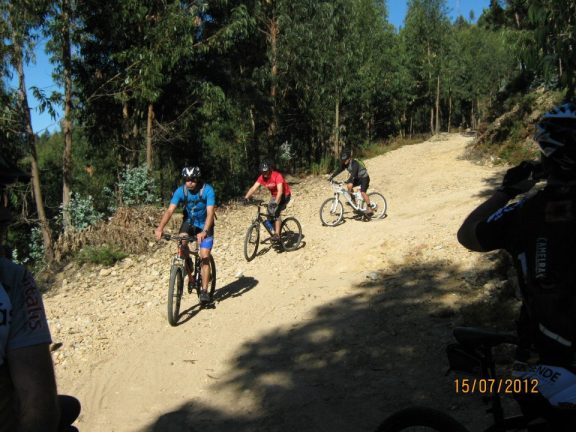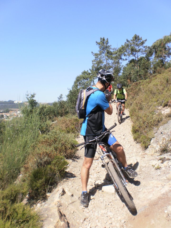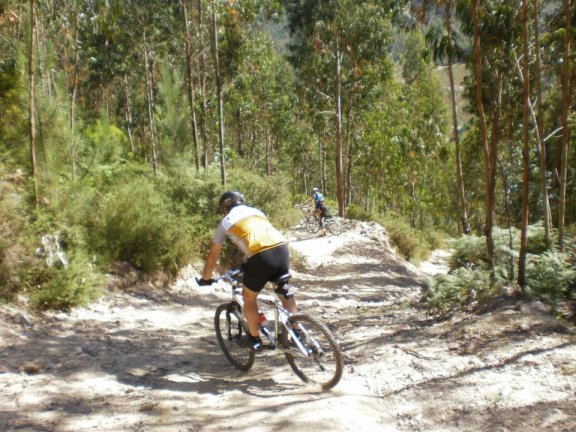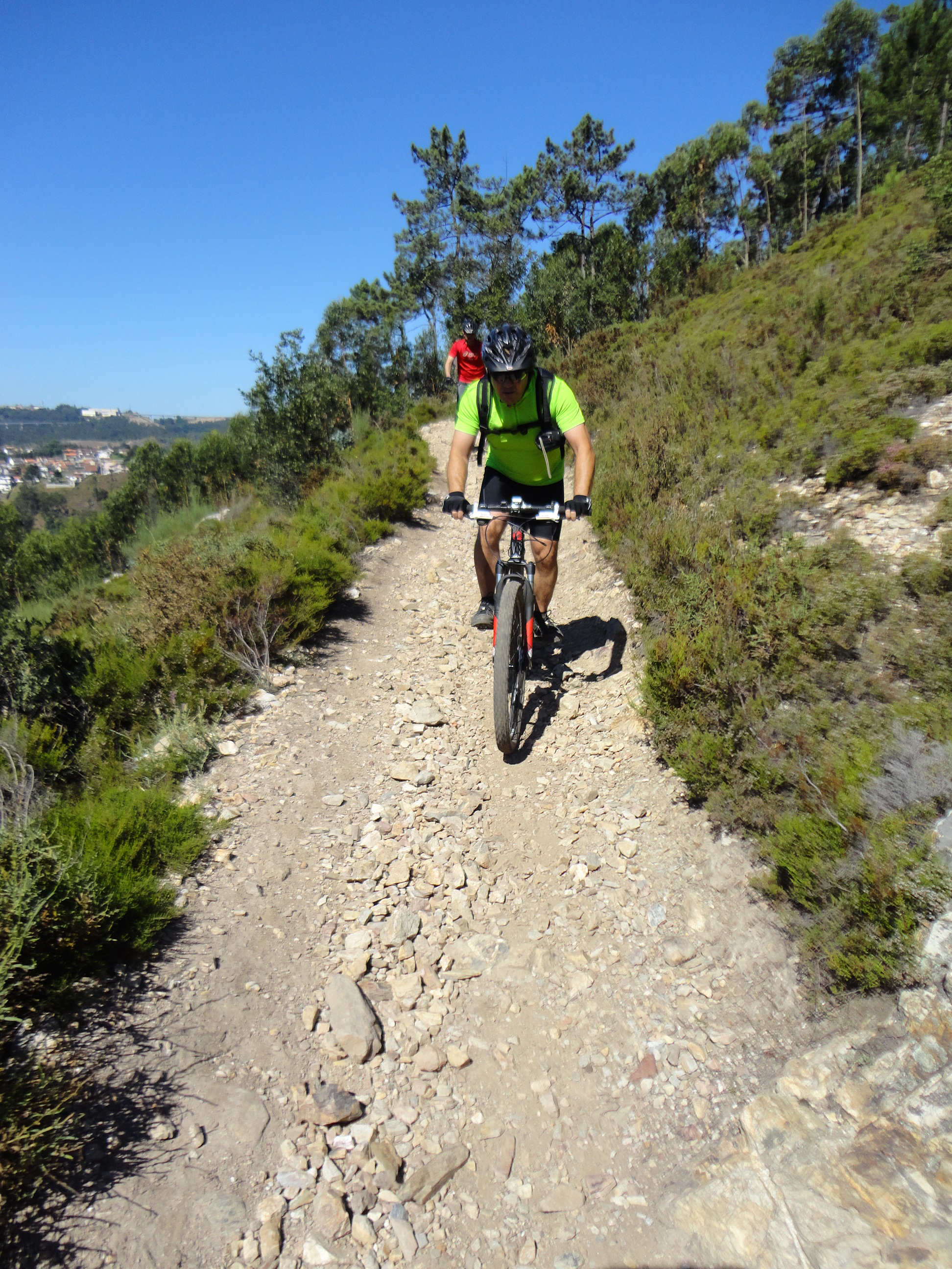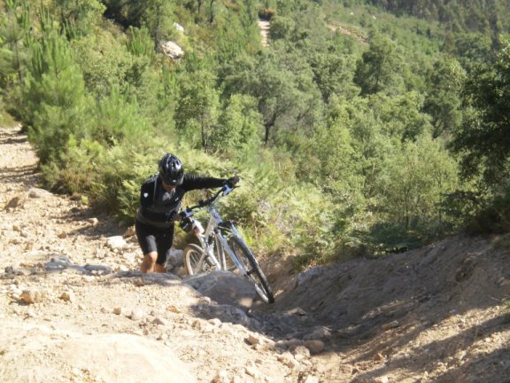 Daqui, optamos por seguir o trilho das caminhadas e não a estrada em paralelos e logo no início dá-se a queda espectacular do Mascarenhas, ao tentar ser acrobata em vez de pedalista, e arriscar passar por um caminho em forma de muro em terra e com declives em ambos os lados. Foi queda na certa e só não deu lugar a problemas de maior pois ele foi rápido a saltar e a libertar-se da bike.