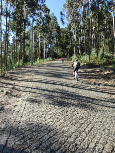 Atravessada a estrada de asfalto, e logo na subida que dá para a igreja de Santa Justa, junto de uma casa e de um cruzeiro, viramos à direita e demos início ao melhor trilho de terra, com descidas pouco acentuadas, com muita pedra, regos, lenha, água e lama, que se tornou cada vez mais rápido e a libertar adrenalina aos aventureiros, mas também a requerer mais perícia e segurança, para que não houvesse quedas.
