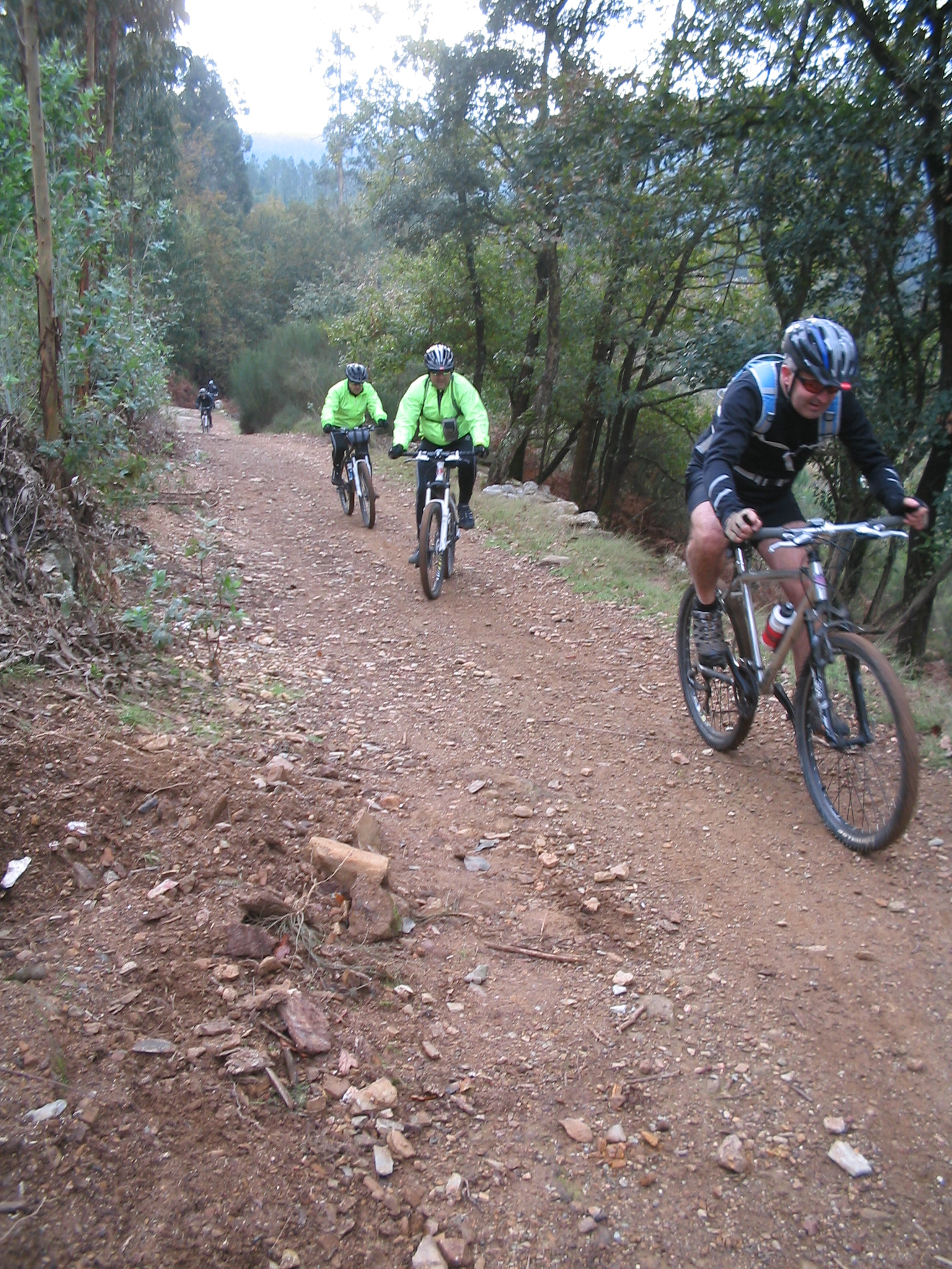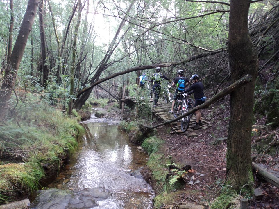 Atravessada a estrada de asfalto, e logo na subida que dá para a igreja de Santa Justa, junto de uma casa e de um cruzeiro, viramos à direita e demos início ao melhor trilho de terra, com descidas pouco acentuadas, com muita pedra, regos, lenha, água e lama, que se tornou cada vez mais rápido e a libertar adrenalina aos aventureiros, mas também a requerer mais perícia e segurança, para que não houvesse quedas.